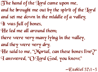 The Great Vigil of EasterSaturday night is the Christian Passover. Our Saturday night service, the Great Vigil of Easter, our most important service of the year, is packed with Passover imagery. Jesus’ death and resurrection took place on the day of Passover. To Christians, the story of Passover is a “type,” a metaphor, foretelling Christ. We tell the story of Israel’s deliverance at the Red Sea, we sing the song of Moses, we even sing a derivative of “this is the night” that Jews would recognize. We believe that as the blood of a lamb caused the angel of death to pass over the Israelites, so the blood of Jesus, the lamb of God, saves us from the angel of death; and as the Israelites passed from bondage to freedom through the water of the Red Sea, so we pass from death to life through the water of baptism. The Great Vigil of Easter begins in a church still dark following Tenebrae the night before when we extinguished the candles one by one. But this darkness is vibrant, with hushed excitement and anticipation. We turn off all the lights so that it is pitch black. In the darkness, a fire is kindled. This is no gentle flame; it roars to life. The fire blazes up in the dark as a symbol of the light of life, Christ rising from the dead. A large candle, the Paschal Candle, is lit from the fire, and carried through the church with the chant, “The light of Christ”. Everyone has a small candle which is lit from the Paschal Candle as the light spreads to each of us. By the light of the candles, we recite the story of salvation. By the light of the Paschal Candle, the deacon sings an ancient chant that calls to mind the Passover imagery. Then we tell stories of salvation from the Old Testament -- Noah and the Flood, Israel’s deliverance at the Red Sea, Ezekiel and the valley of dry bones. In the early church, this service would have begun in the middle of the night, and the storytelling would have gone on throughout the night, as they recalled God’s saving deeds in history. I am assigned to read the story of Ezekiel and the valley of dry bones. I wonder if this was done deliberately, to make a point to me. Upon seeing the valley full of bones, Ezekiel said, “...and they were very dry.” I thought to myself, yes, that is me alright. Very dry. God asks, “Mortal, can these bones live?” In my heart I turn to God and ask him back the same question, about myself. Ezekiel is asked to prophesy to the dry bones, which then take on flesh, and breath, and live. God then explains that the bones are a symbol for Israel, and declares “I will raise you from your graves; I will bring you home.” I turn to the Lord in my heart and ask, “When?” Then I am to sing Psalm 30 in response to the reading. “You brought me up, O Lord, from the dead.” I sing lines that seem very distant to me. “O Lord my God, I cried out to you, and you restored me to health... you restored my life as I was going down to the grave.” I do not feel this, and must sing it on faith; in the hope that one day I will feel this way. If God could do it for a valley full of dry bones, why not for me? Then new Christians, having now heard the story of salvation in history, are baptized and we all renew our baptismal covenant, reminding ourselves that we are in relationship with God, and this salvation we have heard about is ours. It is a joyous occasion and I have seen many new Christians in tears of joy as they begin their new life. Then it’s officially Easter! Light has broken through the darkness and, in a flash of recognition, we know the Risen Lord. Even to me, it is truly glorious, bright and shining. We sing alleluia over and over, ring bells, and throw on all the lights. The place erupts in joy as we celebrate Christ rising from the dead, defeating death on our behalf. We celebrate this first Eucharist of Easter with all the festivity we can find, and we don’t stop for fifty days.